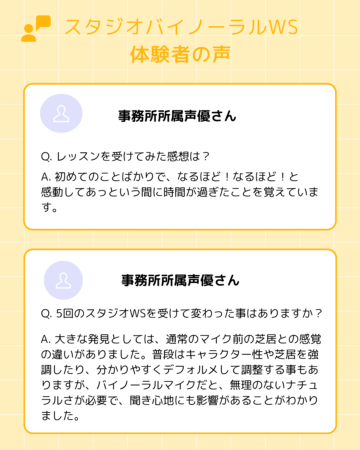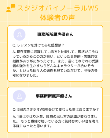 【基礎レッスン】【ナレーションレッスン】【バイノーラルレッスン】を少人数制にて行っています。